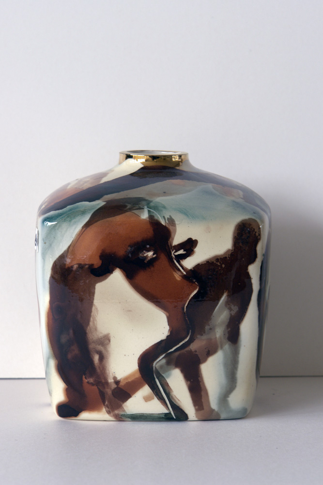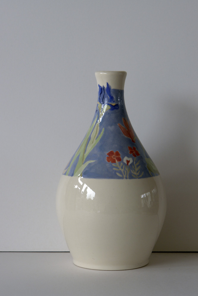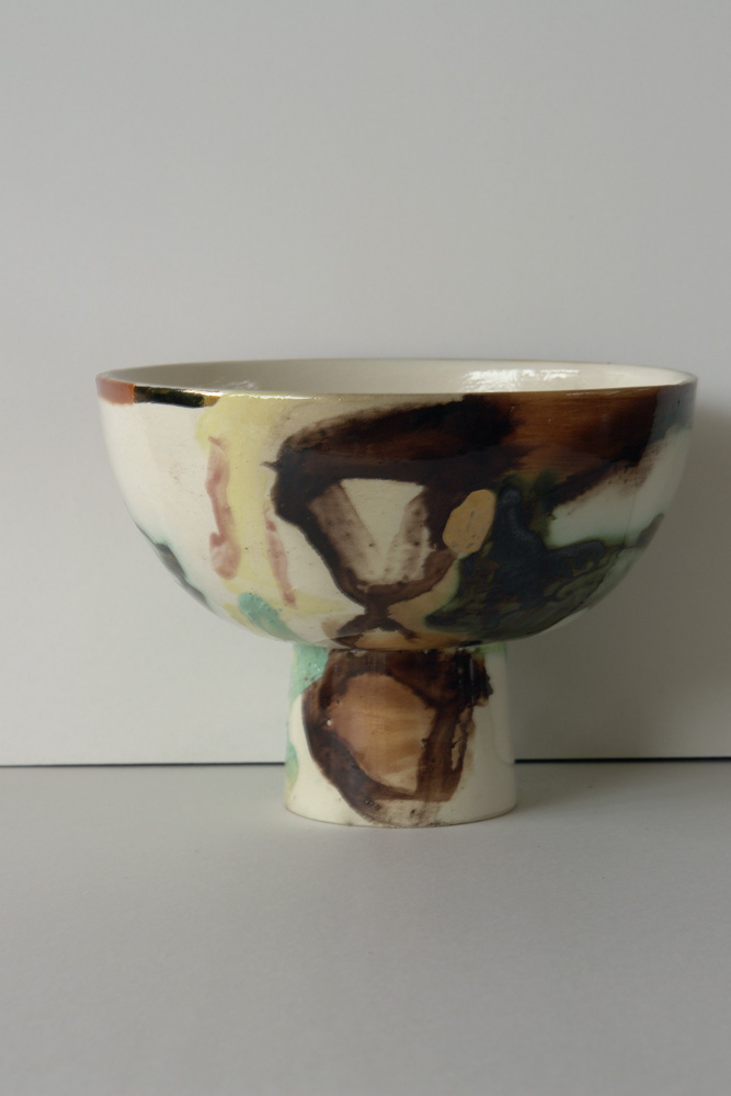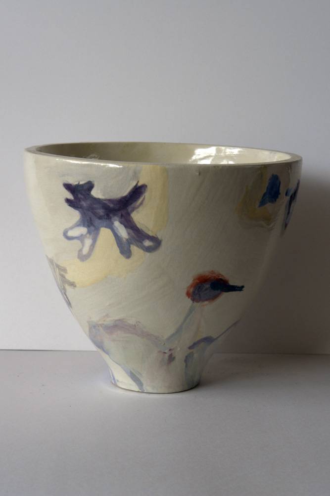 Wederom eerst ongeveer 10 jaren vazen en schalen e.d.. Soms gedraaid of met de hand opgebouwd maar meestal gegoten vormen met behulp van veelal zelfgemaakte mallen om mooie simpele vormen te krijgen waarop gewerkt kan worden. Eerst nauwkeurig beschilderd, bewerkt, uitgesneden; gewerkt wordt met oxides, engobes, onderglazuren e.d., vaak met een transparante glazuur, eventueel nog een laatste stook met wat goud of luster. In het begin veel bloemen, al snel mensen, honden, kleuren, vrijer.